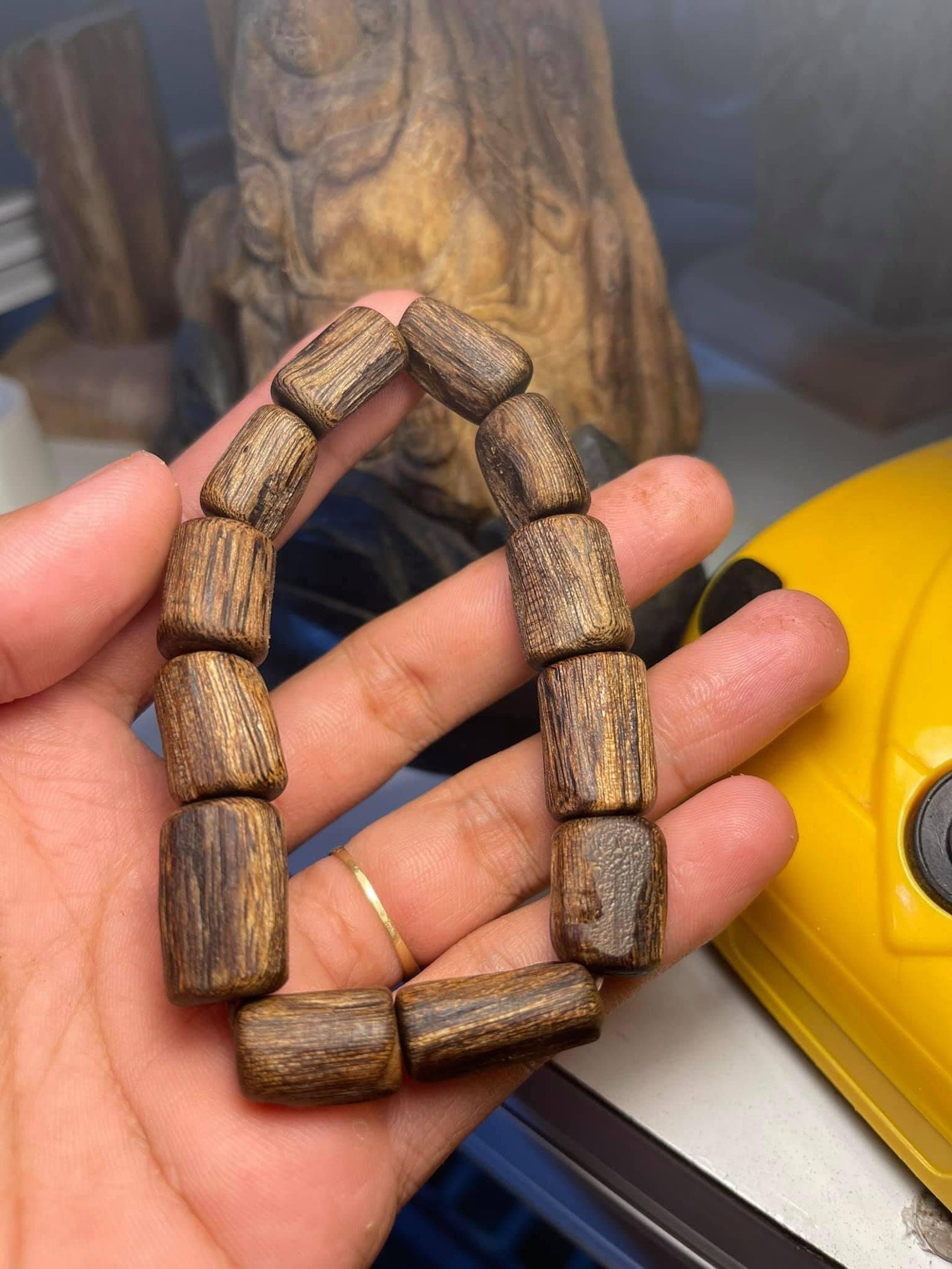 With the real agarwood bracelet, the beads will become glossier, and the aroma will enhance as you wear it over time.